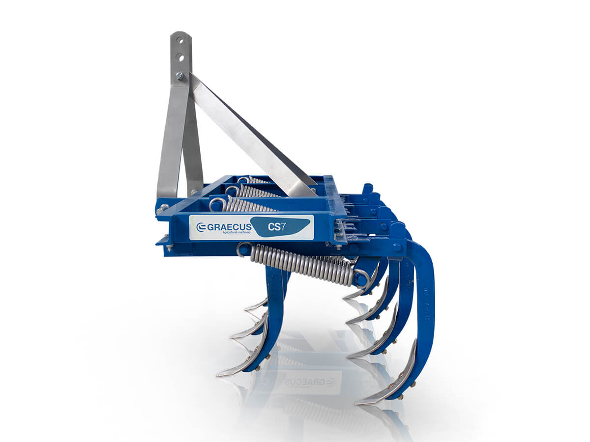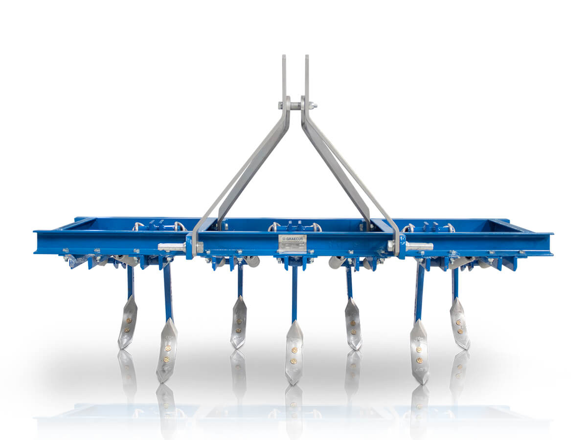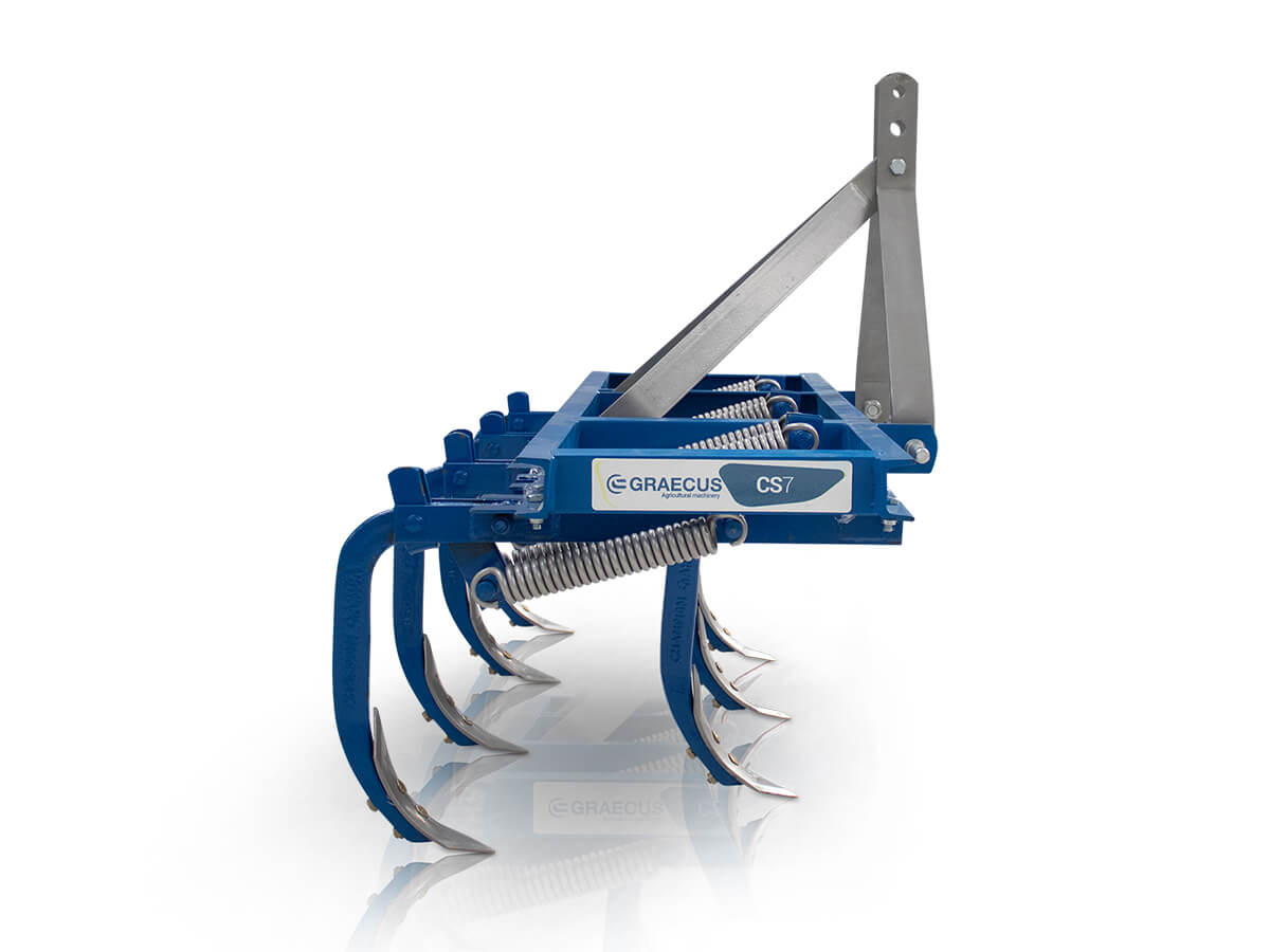 The Agrimac CS7i/170 is a robust cultivator-ripper designed to break up soil evenly while protecting crops and disturbing weeds efficiently. It aerates and loosens soil to a depth of up to 35 cm, depending on soil type and tractor horsepower. If one tine hits a hidden obstacle, the others continue working at the correct depth.