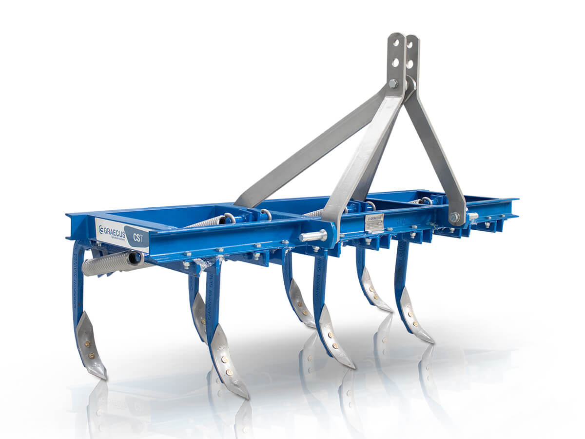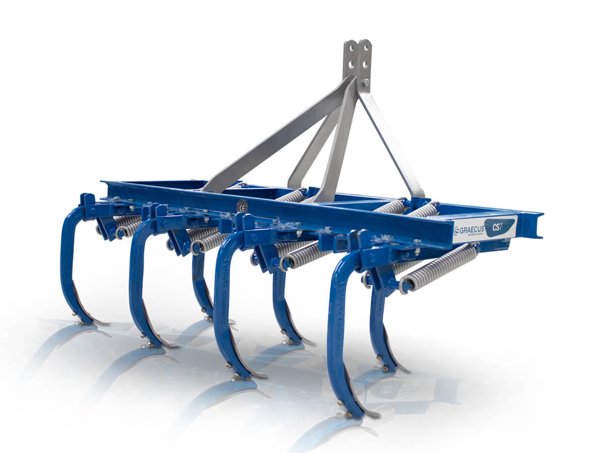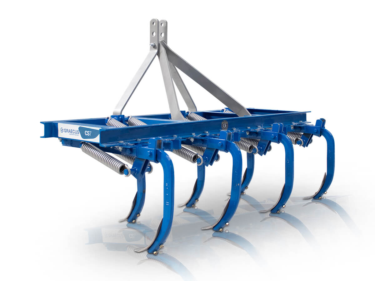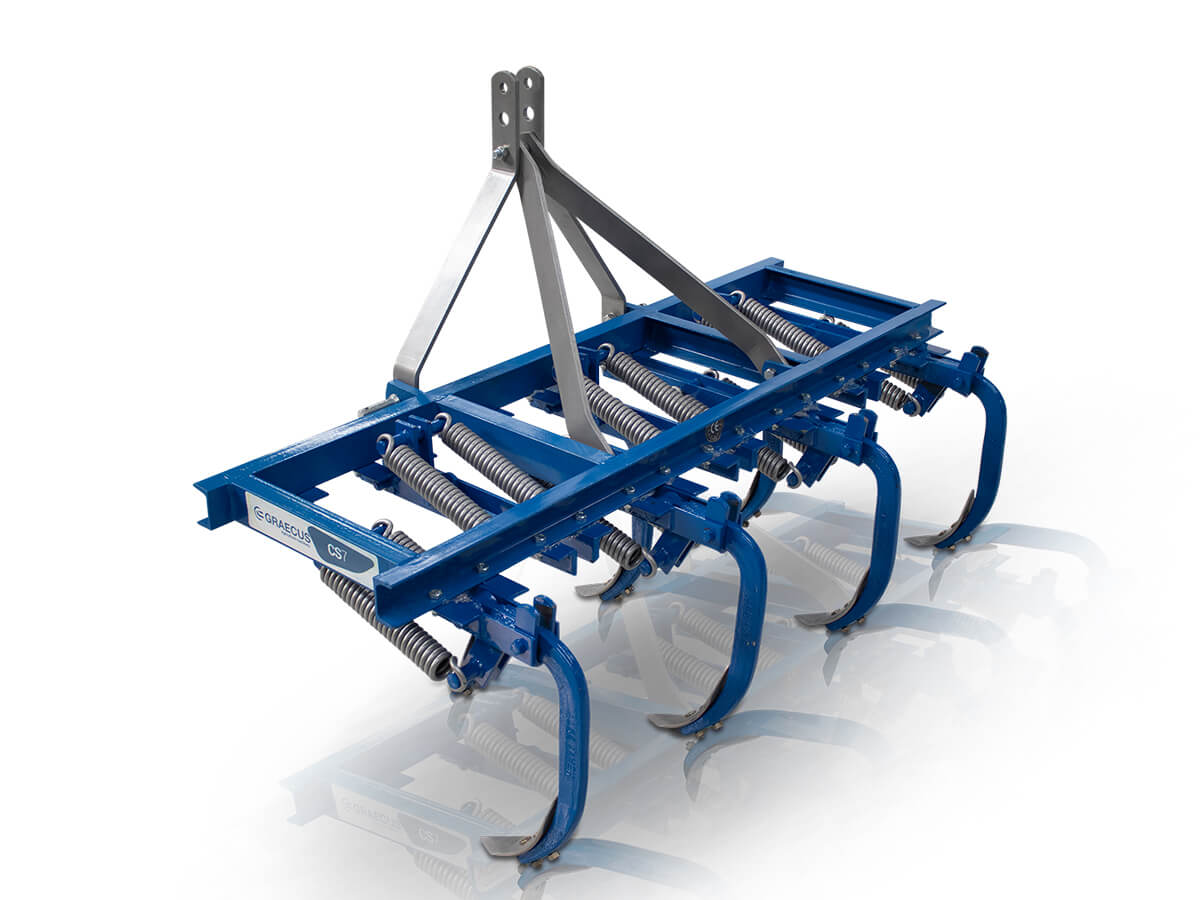 The Agrimac CS7i/170 is a robust cultivator-ripper designed to break up soil evenly while protecting crops and disturbing weeds efficiently. It aerates and loosens soil to a depth of up to 35 cm, depending on soil type and tractor horsepower. If one tine hits a hidden obstacle, the others continue working at the correct depth.