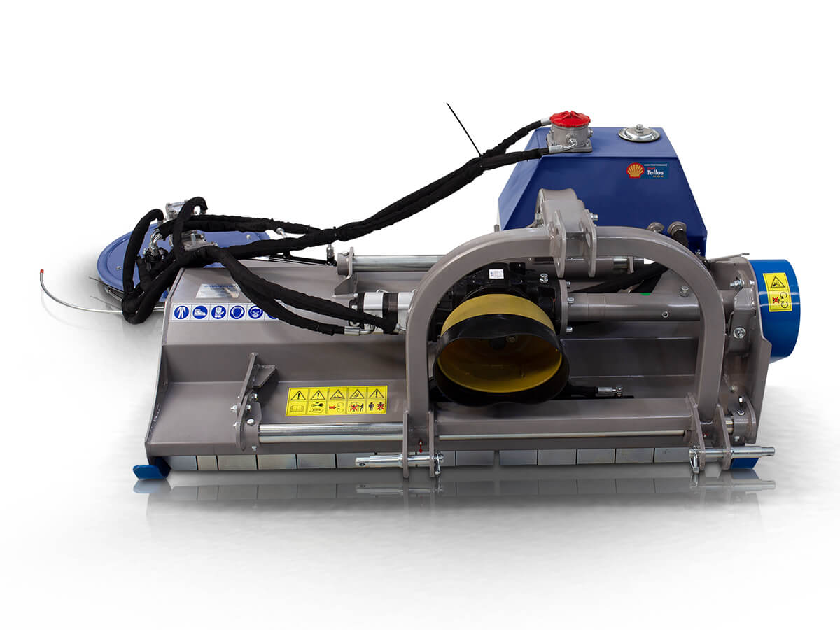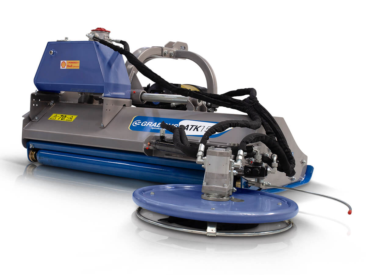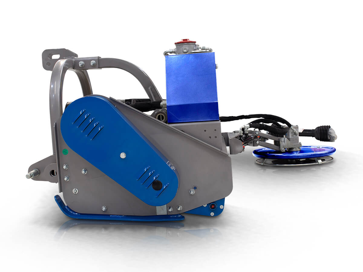 Side grass-cutting disc (Ø 60 cm) with hydraulic offset and spring-loaded arm