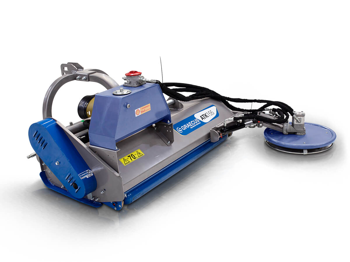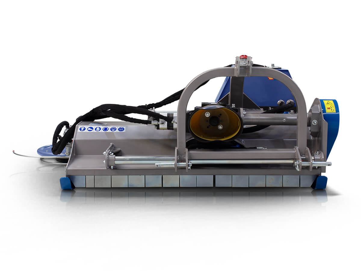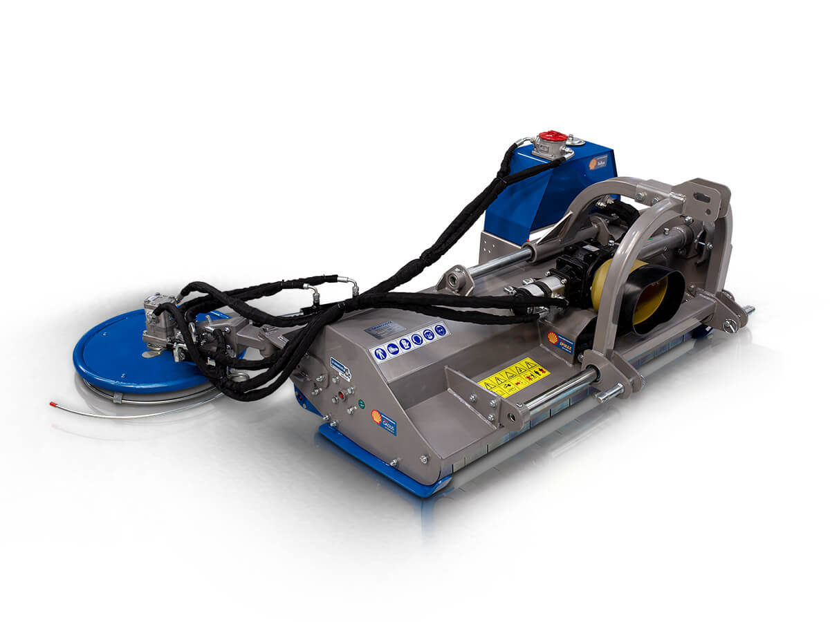 Side grass-cutting disc (Ø 60 cm) with hydraulic offset and spring-loaded arm