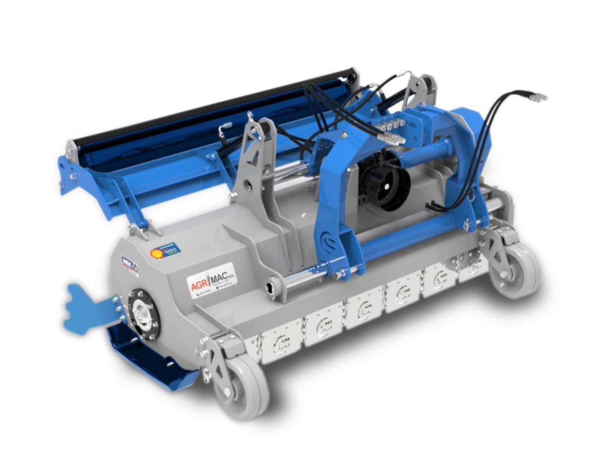 The CERBERUS OPEN160 is a professional heavy-duty flail mower designed for demanding agricultural and orchard applications. Its robust construction combined with the hydraulically opening rear hood makes it ideal for shredding grass, branches, and large volumes of pruning residues.
