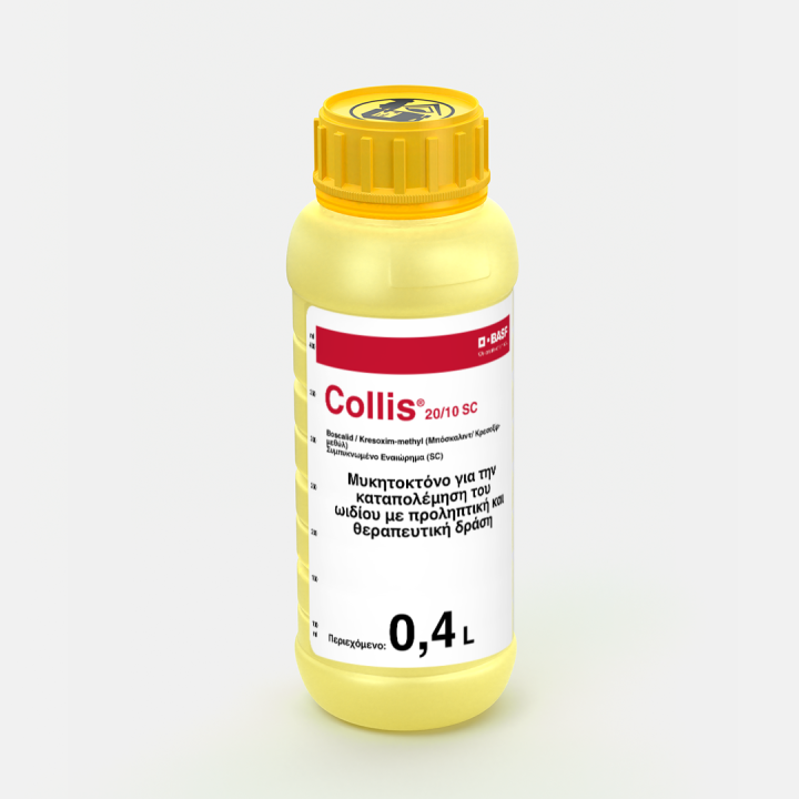 Collis is a fungicide blend of two active ingredients, kresoxim-methyl and boscalid, with similar modes of action to control powdery mildew.