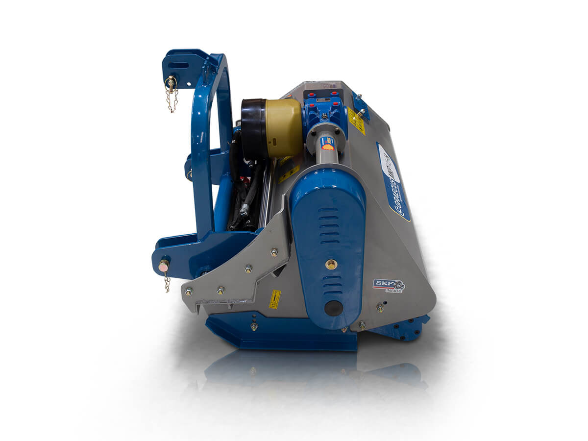Low-profile construction allows trimming close to tree roots without deviating from the tractor’s path or damaging saplings